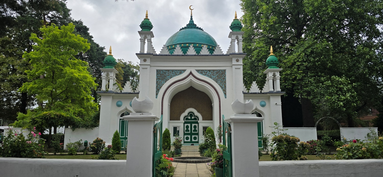 We’ll begin at the Grade I listed Shah Jahan Mosque in Woking, the oldest purpose-built mosque in the United Kingdom.